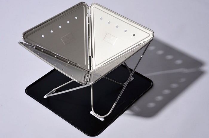 コンパクトに折りたためる小型の焚き火台で、収納時にスペースを圧迫しません。