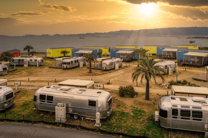 大阪市此花区の人工島・舞洲にあるグランピング施設です。アメリカのマイアミをイメージした施設となっており、「日本の夕陽100選」にも選出される美しい夕陽を眺めながらのBBQも格別です。