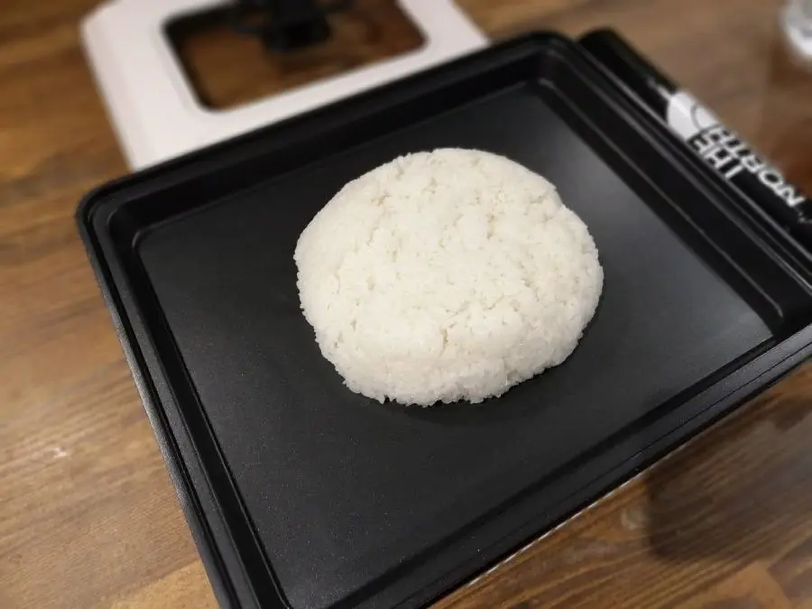 真ん中に卵の黄身を置くので、スプーンで少しだけ凹ませておきます。