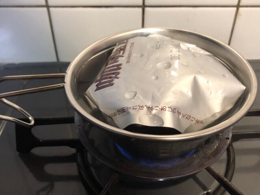 1.米をメスティンで炊飯し、炊飯している間にシェラカップ等でレトルトカレーを湯煎して温めます。