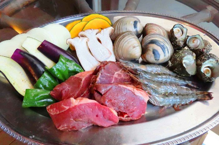 さざえ、海老、牡蠣、大ハマグリがセットになった、盛りだくさんの内容となっています。
