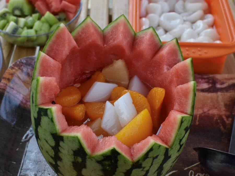 夏の定番スイーツ フルーツポンチをスイカで作っちゃいました!スイカにするだけで一気に夏気分になります♪写真映えもするのでぜひ作ってみてください?