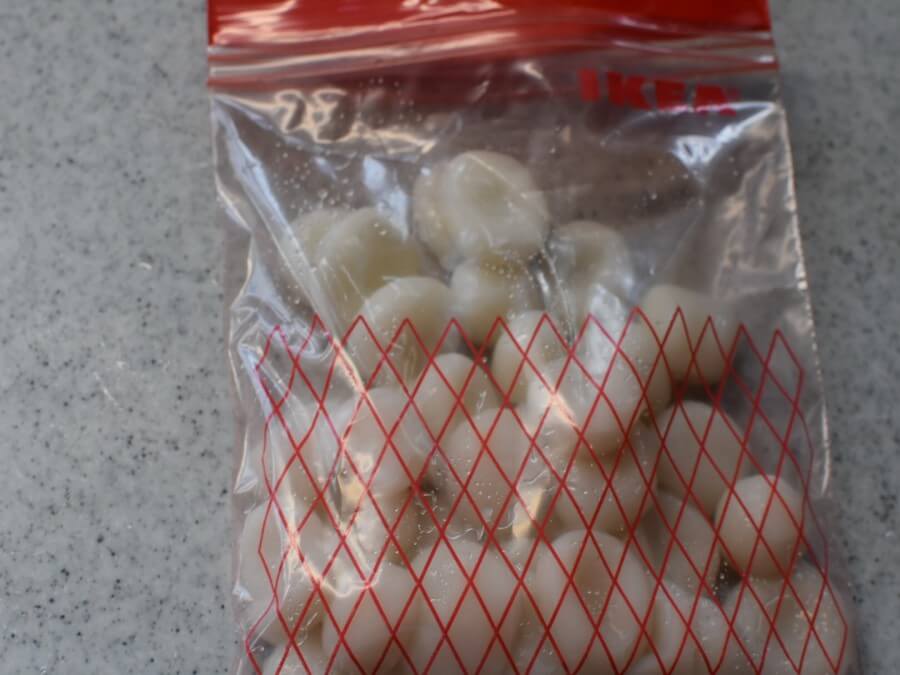 粗熱が取れたらジップロックやタッパーにいれてキャンプに持っていく準備をします。このとき水を少量いれてください。団子がひっつくのを防ぎます。
