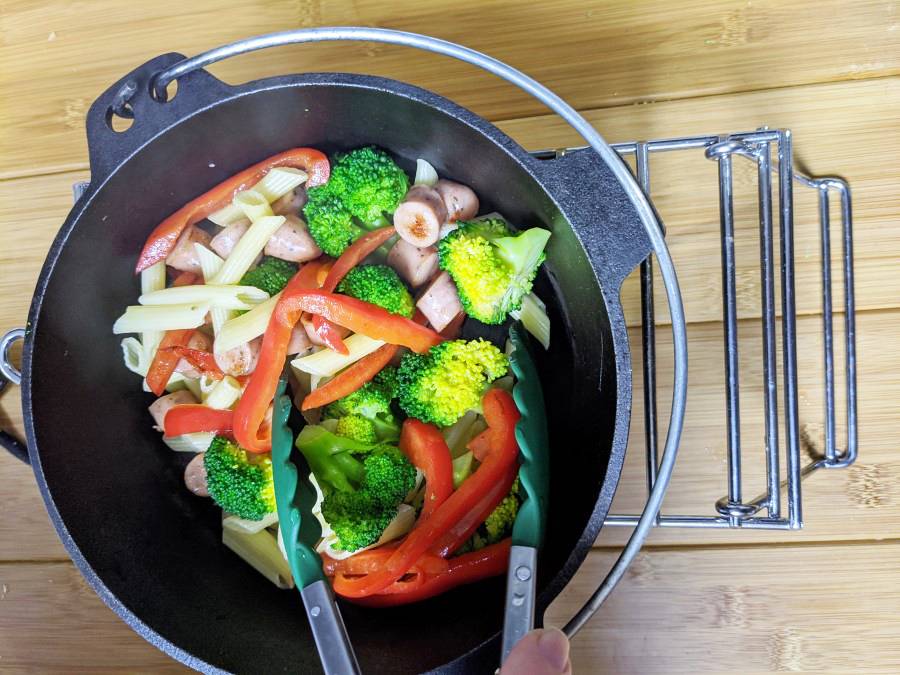 ダッチオーブンであたたかいペンネ料理をつくりました♪