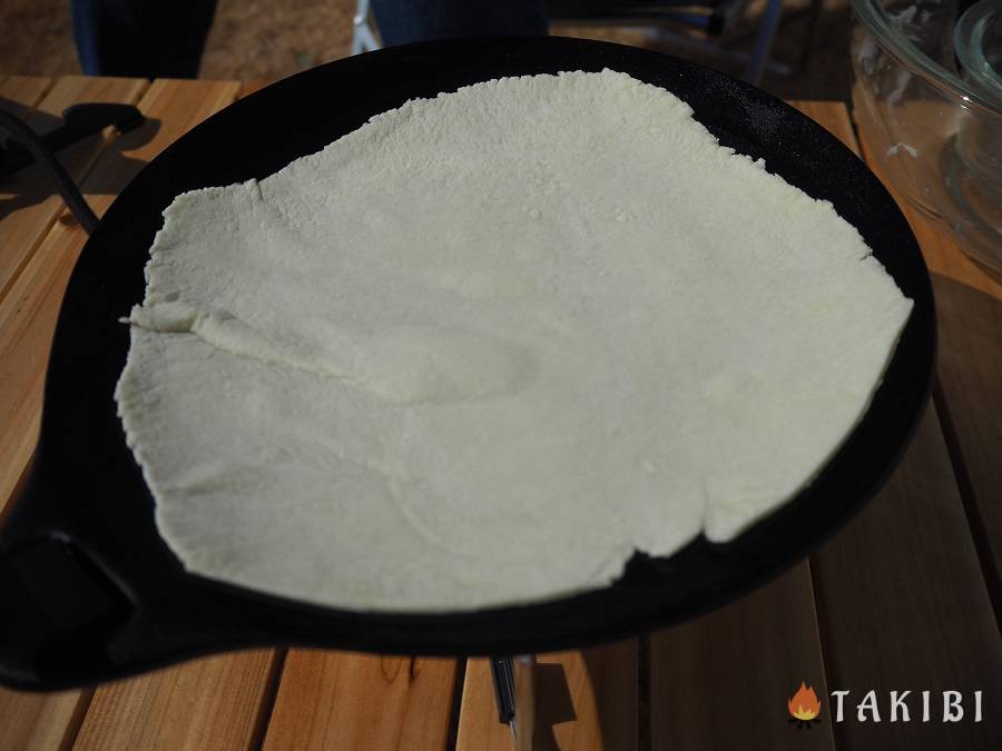 ピザ生地を薄く伸ばして両面焼くことで、サクサク食感になり美味しく仕上がります。