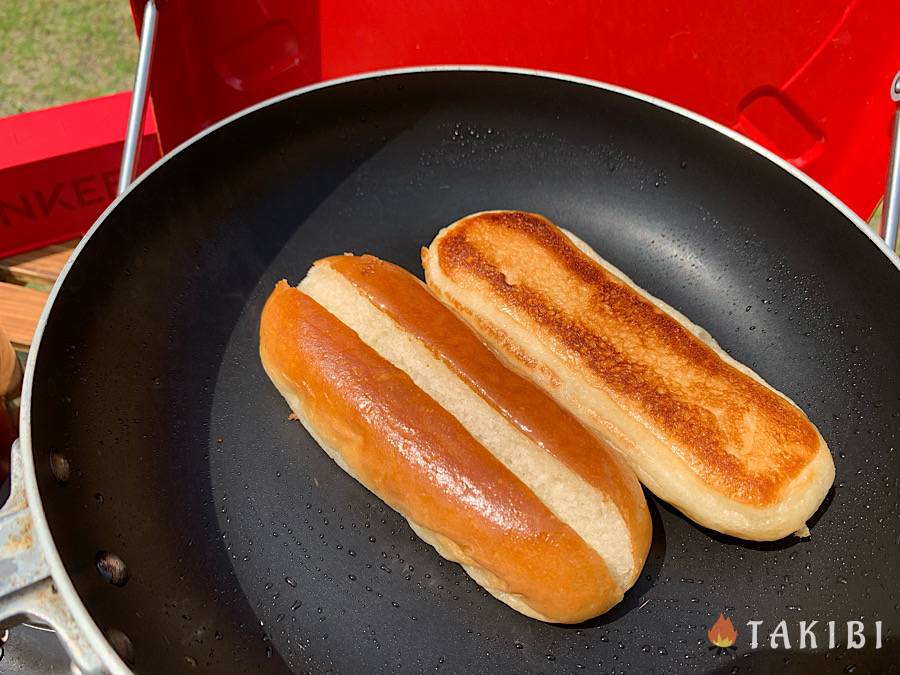 ロールパンを2本ずつ調理していきます。焼き方は全て同じです。