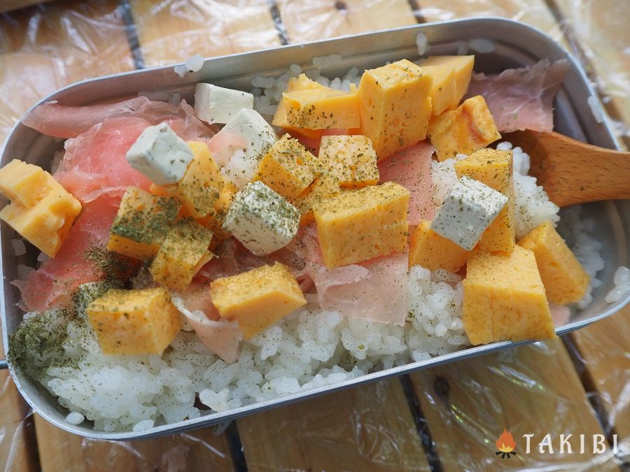 今回は、生ハムとクリームチーズ、厚焼き玉子を使ったごちそうおにぎりです。