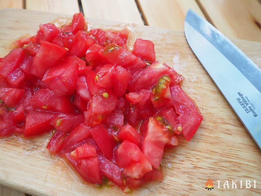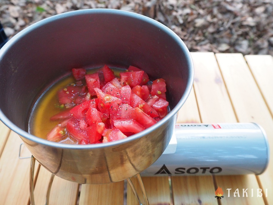 そこにトマトを入れて少し煮詰め、スープを冷ましておきます。
