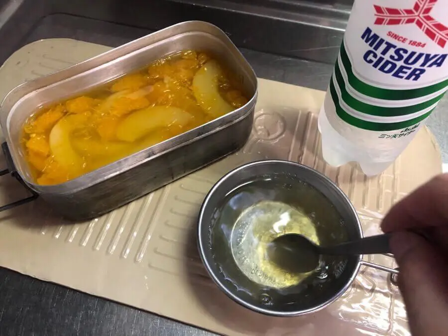 3.溶かしたゼラチンをメスティンに入れてまぜる。
