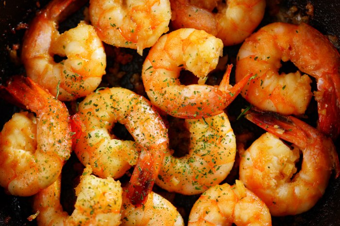 ボウルにエビ・調味料を入れてかき混ぜ、クーラーボックスで20分冷やします。フライパンを熱し、ボウルの中身を全て投入したらエビに焼き色が付くまで加熱しましょう。お皿にガーリックシュリンプを盛りつけてパセリをふったら完成です。