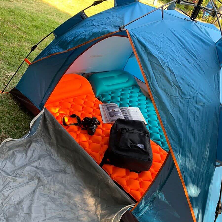 空気を入れて膨らませて使うベッドの種類です。マットのような形状でサイズ展開も幅があり、複数でのキャンプに向いています。