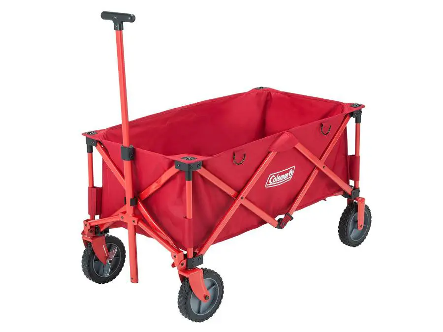 多くのキャンプ用品を発売しているブランド「コールマン」のアウトドアワゴンは、タイヤが大きく安定性があっておすすめです。積載可能重量は100Kgで、キャンプ用のキャリーカートとして一般的なものと言えるでしょう。本体重量は約11Kgで、収納時には折りたたむことができます。さらに別売りで発売されているアウトドアワゴンテーブルを使えば、テーブルとしても使用可能です。