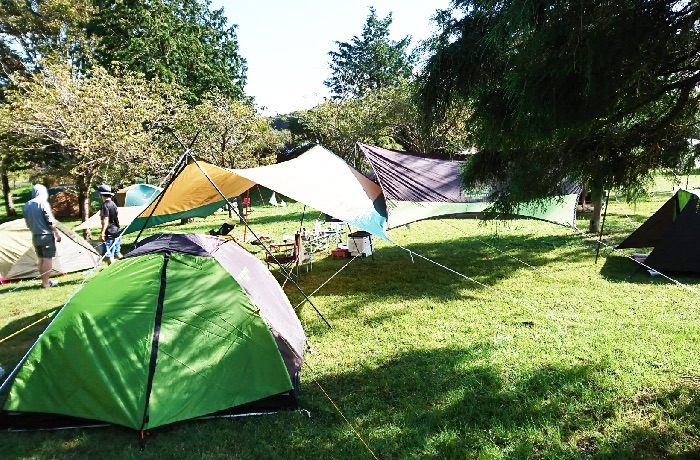 タープのミッションはアウトドア居住空間に「ちょっとした日陰」を作ること。