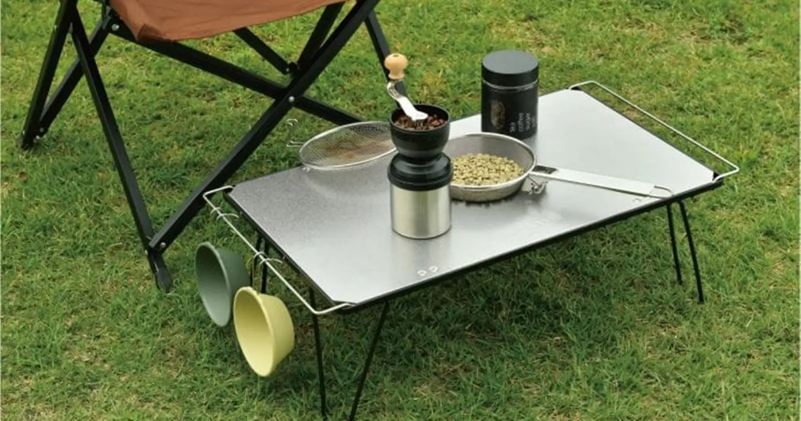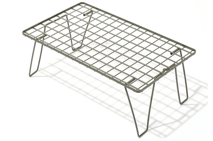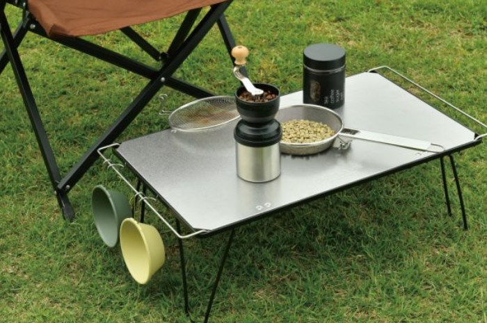 ステンレス製の天板なので熱に強く衛生的なのが特徴。ランタンやガスバーナーなどの火を扱う道具を置きたいときに使用したり、焚き火の近くでフィールドラックを使いたいときにおすすめです。