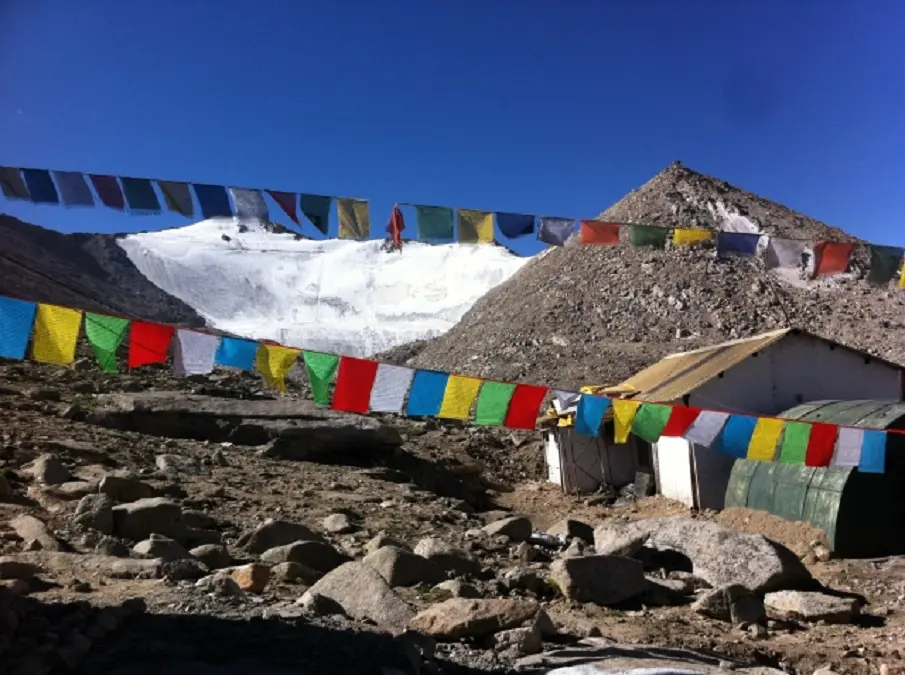 キャンプの飾りは、おそらくタルチョから?