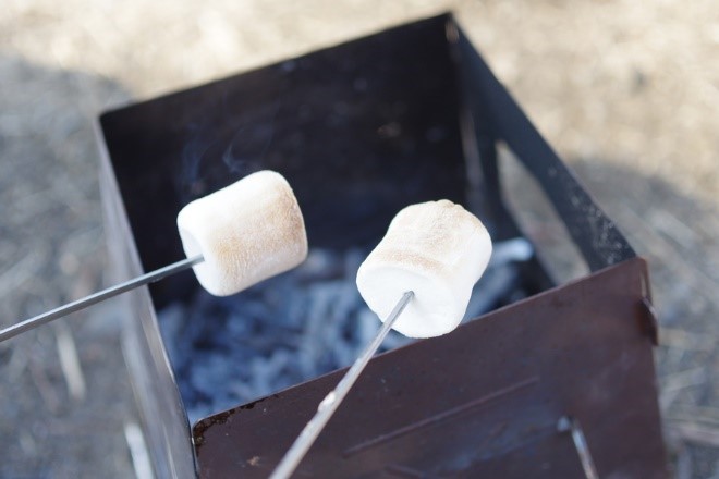 焚き火を楽しんだ後の残り火でマシュマロ焼きをするのもお勧めです。