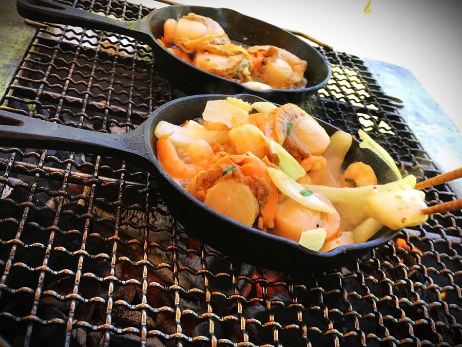 焚火は勿論ですが、例えば焚火台で料理をする時も同様で、今までは雨が降ると焚火台で料理をすることも躊躇していたのすが、このタープなら気持ち的にも楽に火を使った料理をすることが出来ます。