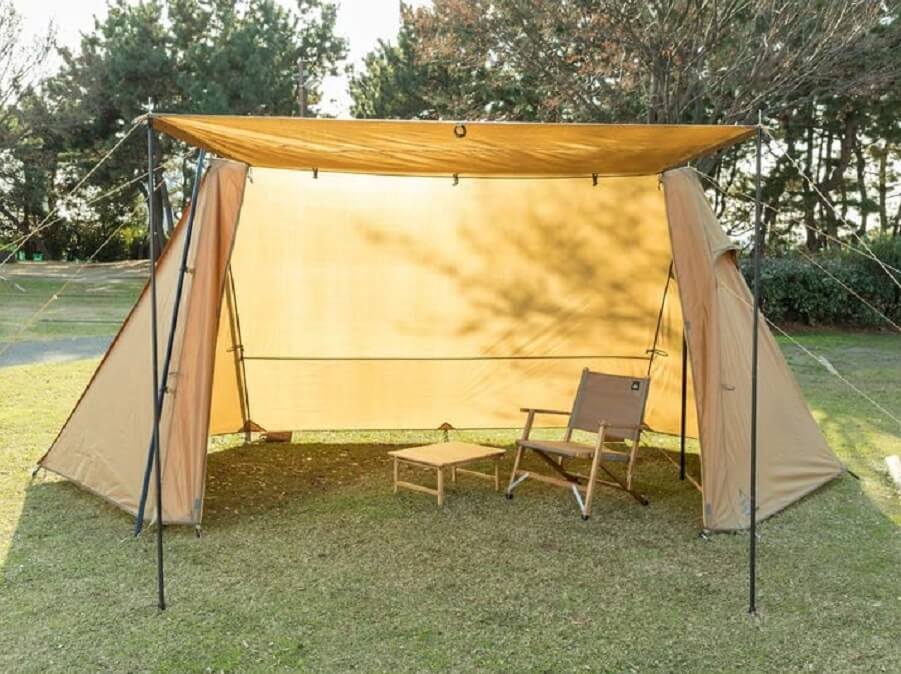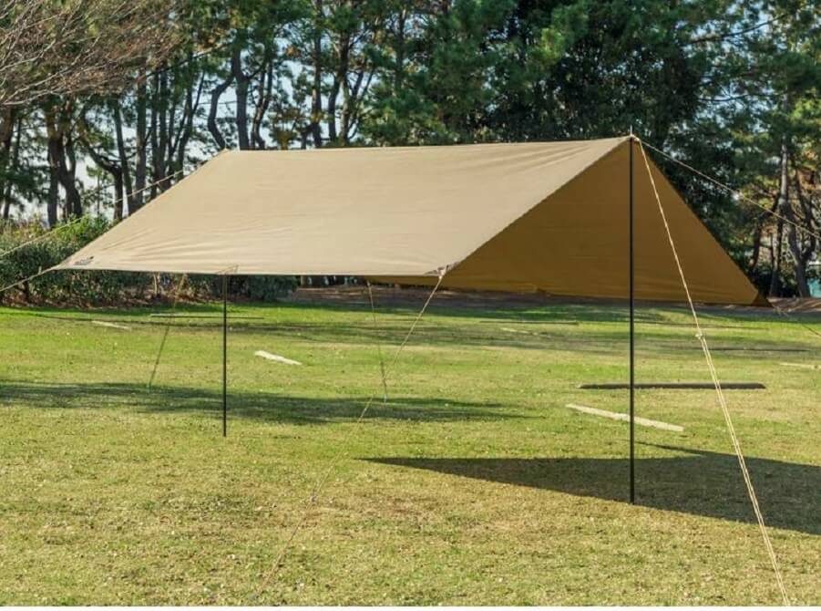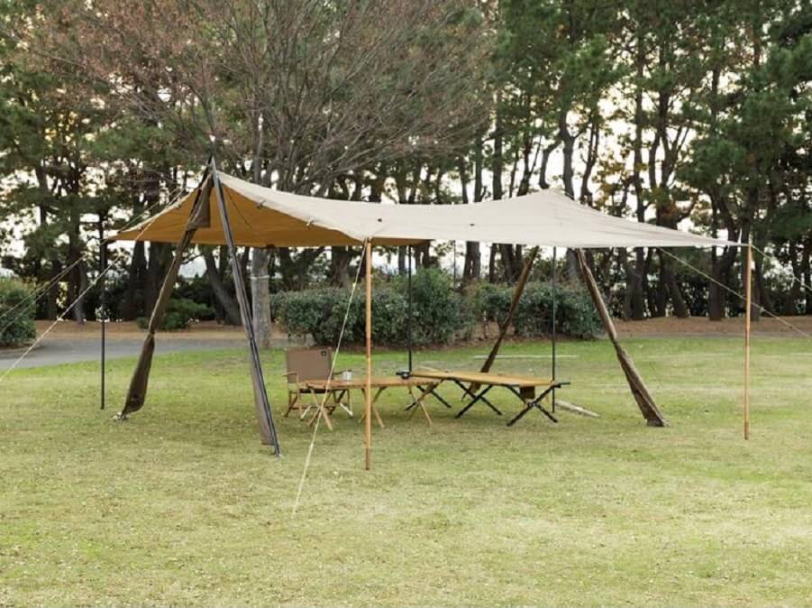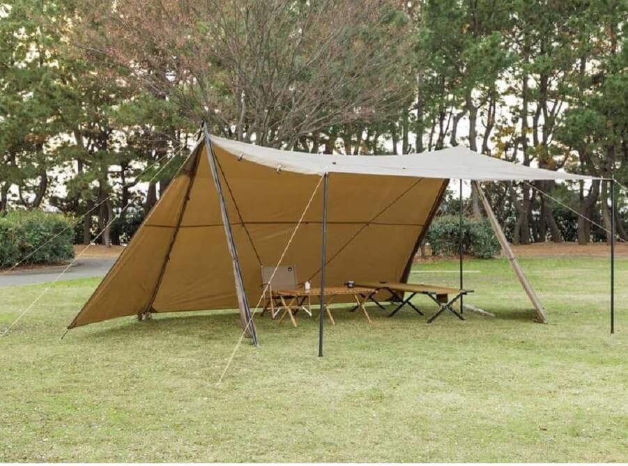 設営がしやすい長方形タイプのタープです。フォークティピィテントと組み合わせて使用するなど、アレンジもしやすいタープですね。