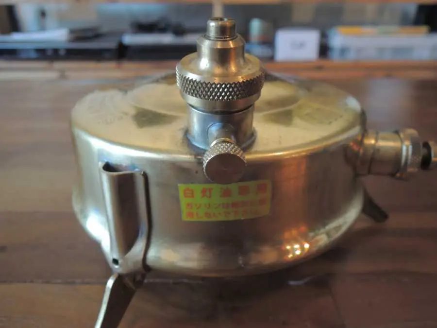 火が消える前に調整弁を閉め、ポンピングします。するとノズルから灯油が噴射されて火が付きます。炎が安定するまでは急に大きな火柱が上がったりします。