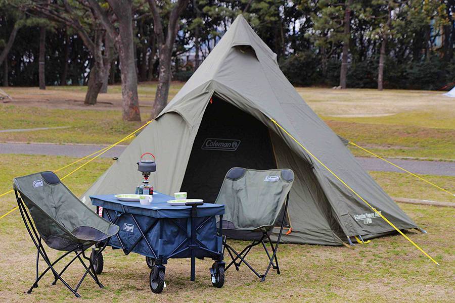 足を延長できるため、ロースタイルでもハイスタイルでも比較的快適に使用でき、中央にはポールを通せる穴が開いているため、ティピーテントの中央に設置することも可能です。
