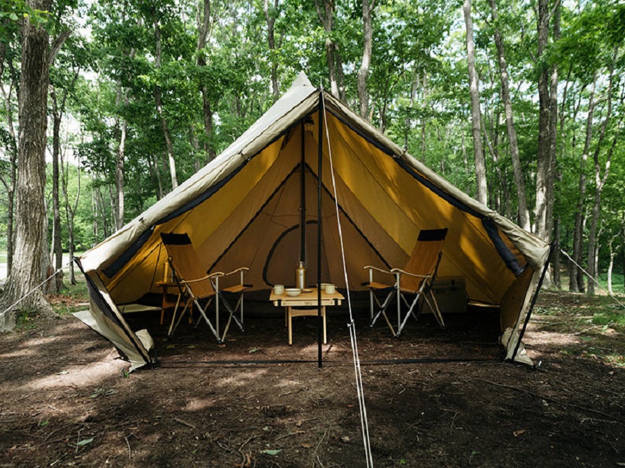 ワンポールテントのように、入り口の開口部分を広くとり、出入りしやすくすると同時に居住空間を広く確保することで、シェルター内の快適さを実現しています。