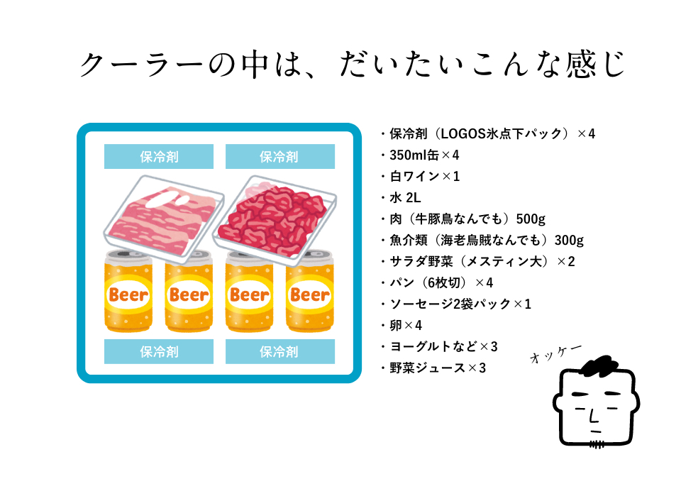 いちにの家では、クーラーボックスの底と側面などの空いた隙間に保冷剤を入れて使ってますが、春キャンプでも翌日朝にはかなり溶けてます。