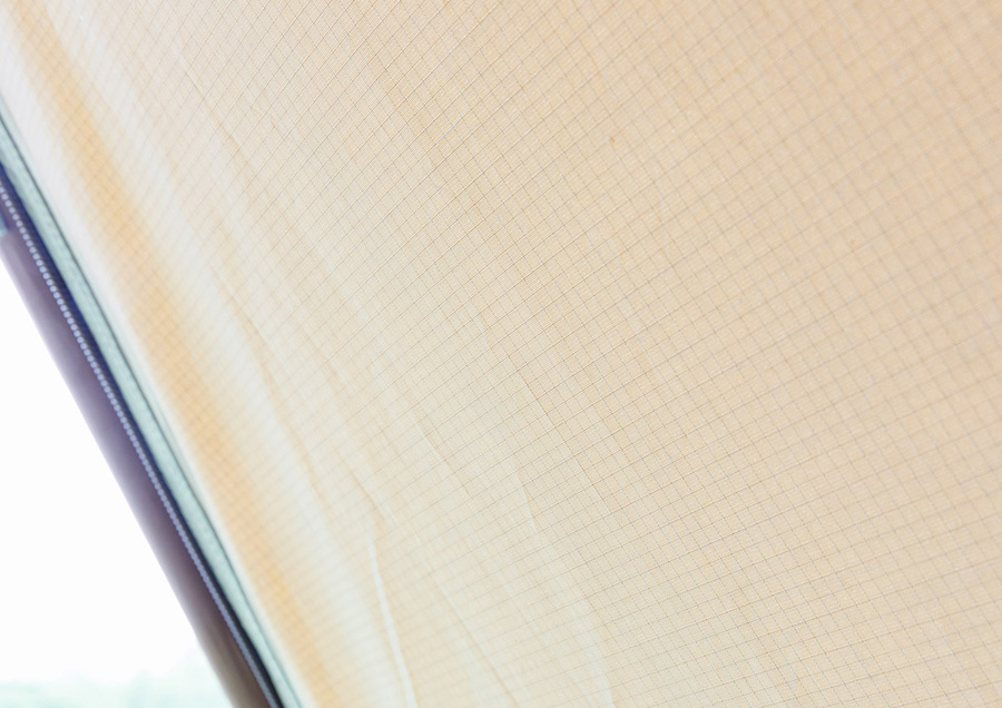 ピグメント加工という、生地そのものの遮光率をグーンと引き上げて濃い影を作ることで体感温度を下げるという加工を内側に施しているため、ポリエステルのテントとしてはかなり涼しく過ごすことができます。