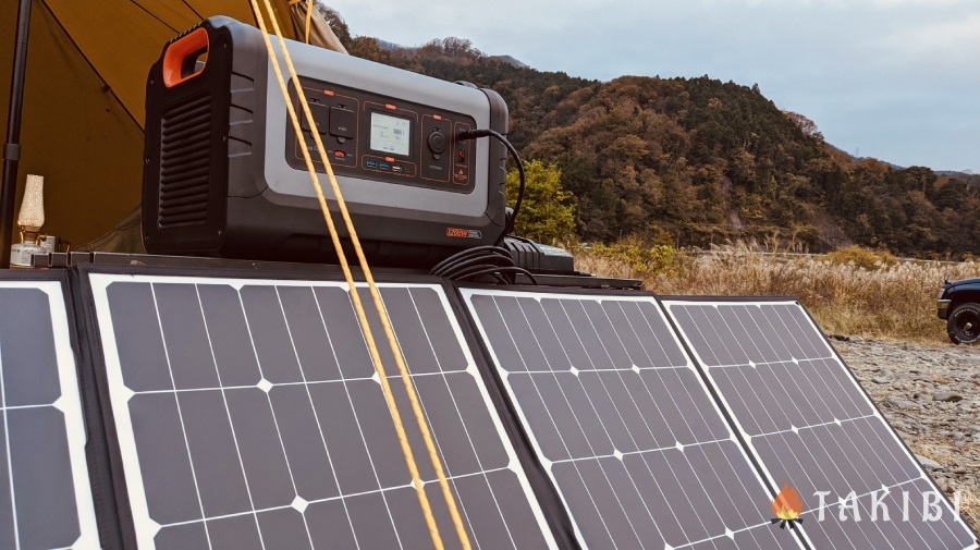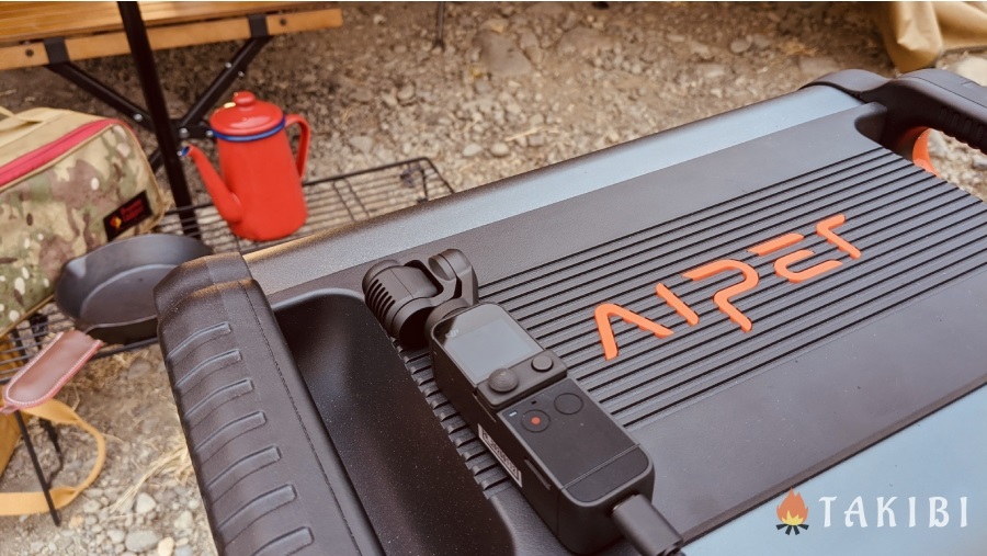 今回のキャンプでは、Aiperのソーラーチャージャー「SP 160」を使って「DISCOVERER 1200」を充電しながら使いました。