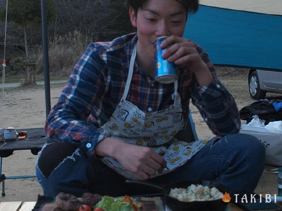 夜の晩酌で焚き火をしながら一杯もいいですが、とりあえず設営が終わって一杯飲んでもいいんです。