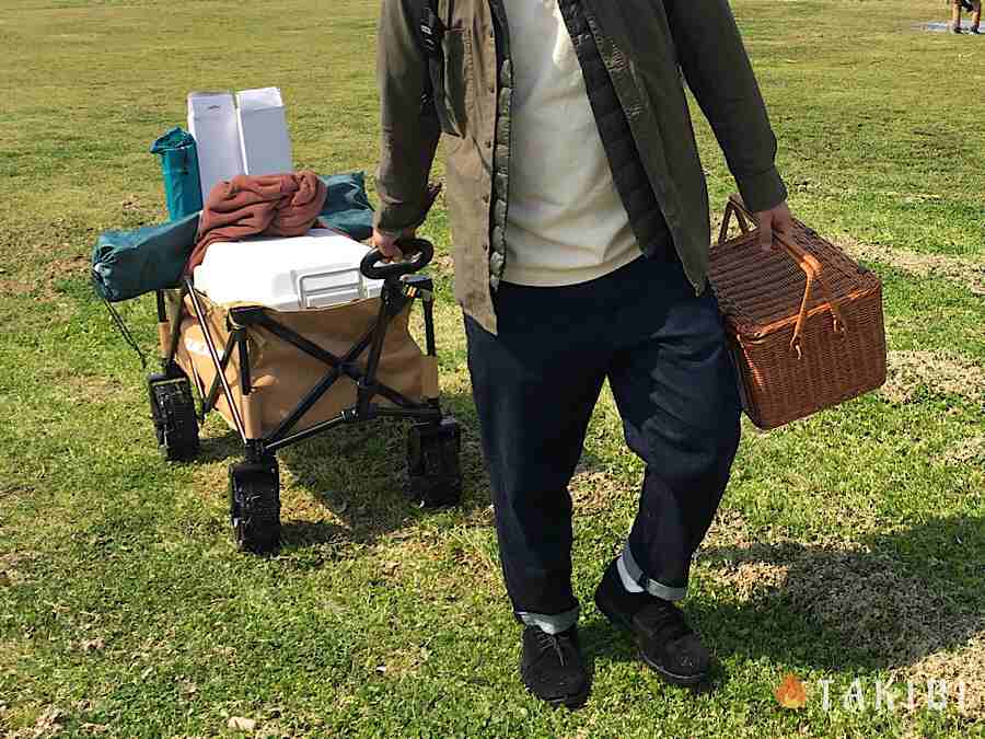 オートキャンプ場で、車を横付けできる場面ではあまり活躍しませんが、車が入れないキャンプ場へ行く際には必須のアイテムです。