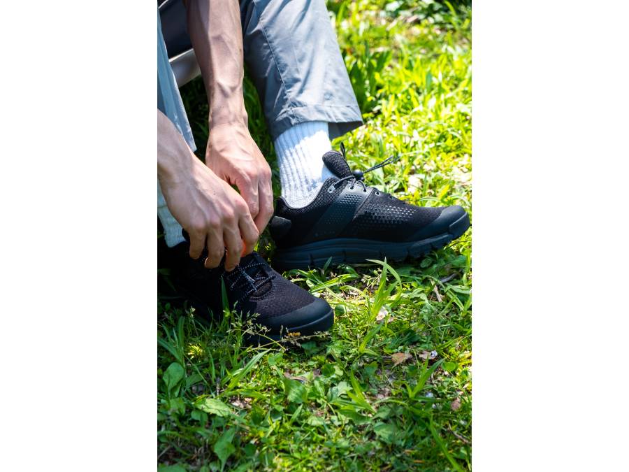 - ・アジャスター付きのクイックレースを採用することで、着脱がしやすくなっている。テントへ入る脱ぎ履きもノンストレスに。