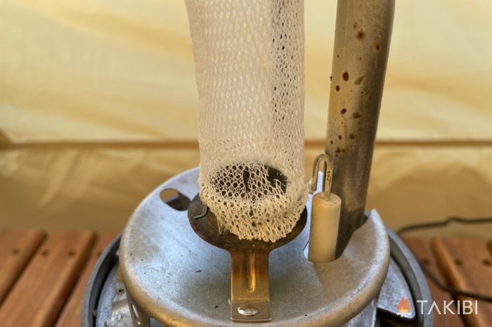 ここでちょっとしたポイントがあります!マントルを取り付けた後、自動点火装置先端のガイシにマントルの繊維が触れていないかチェックしてくださいね。