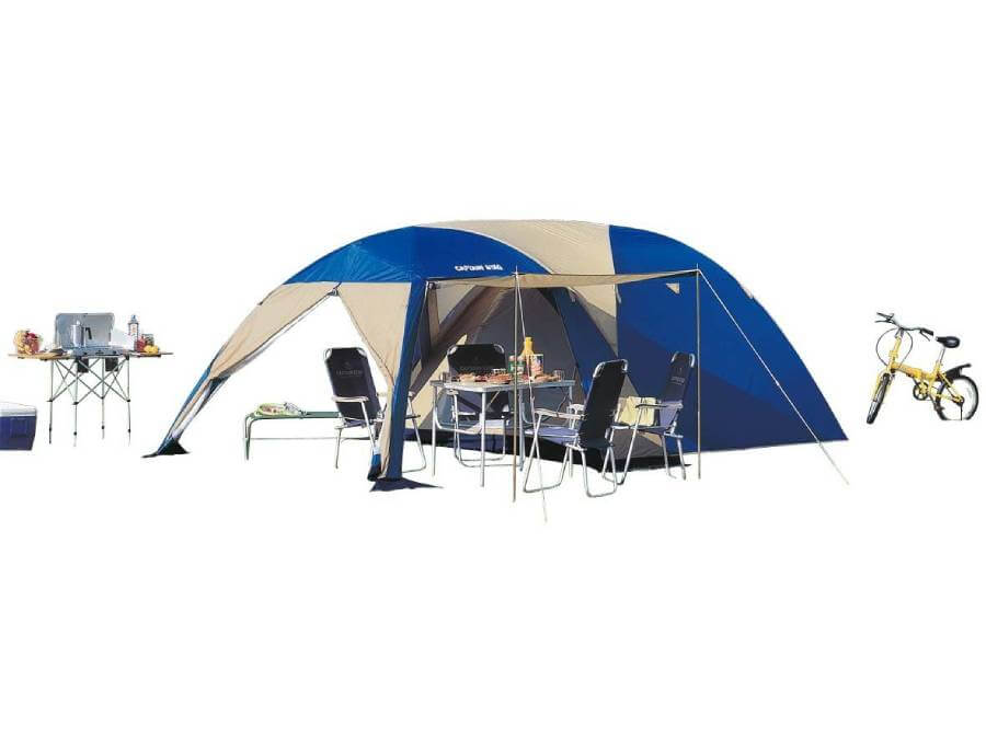 テントと一緒によく利用されるアイテムに「タープ」と呼ばれるものがあります。簡単に言えばタープとは一枚のテントを柱や紐で張った屋根のことです。テント内は靴を脱いで入ることが多いため、タープがあると靴を履いたまま日光や雨を避けることができるため、食事をするときなどに重宝されるアイテムです。そしてそのタープがテントと一体になったものが、「ツールームテント」と呼ばれるタイプのテントです。わかりやすく言えば、寝室と土足で使えるリビングがセットになったテントということです。軒のように屋根だけついたタイプのものから、軒の側面が網やテントで囲まれたタイプのものもあります。側面がネットやテントで囲まれていると、食事をする際に夏場の虫除けに便利ですし、寒くなってきたときにテントを閉めれば防寒対策にもなります。