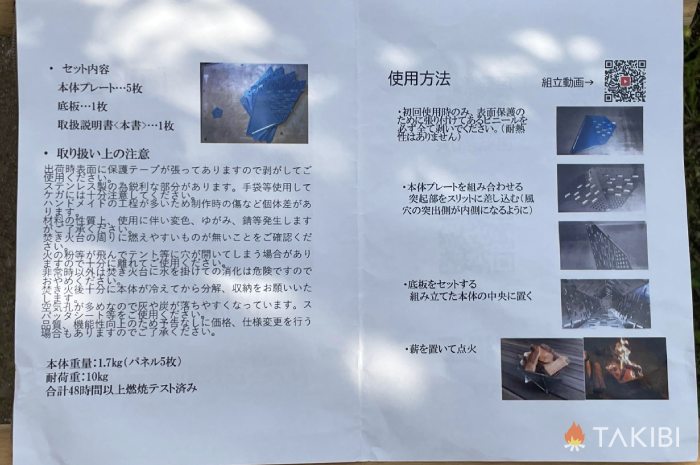 ・空気孔が多く、灰が隙間から落ちるので、必ず焚き火シートを使用してください。