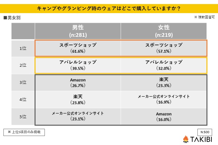 【質問:キャンプやグランピング時のウェアはどこで購入していますか?】