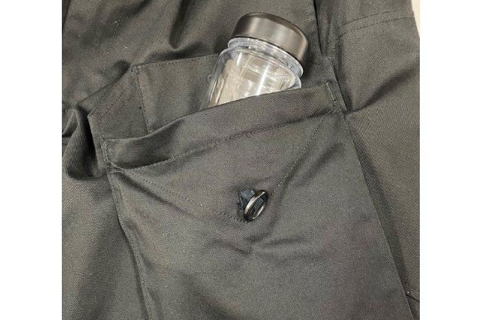 「焚き火ミリタリーパンツ」の両脇には大きめのポケットを搭載しています。このポケットは大容量で、500mlペットボトルが入るサイズ。