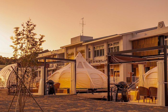 廃校をフルリノベーションしたグランピング施設です。大人なら誰しも憧れる子供時代に戻ったような気分を味わうことができます。