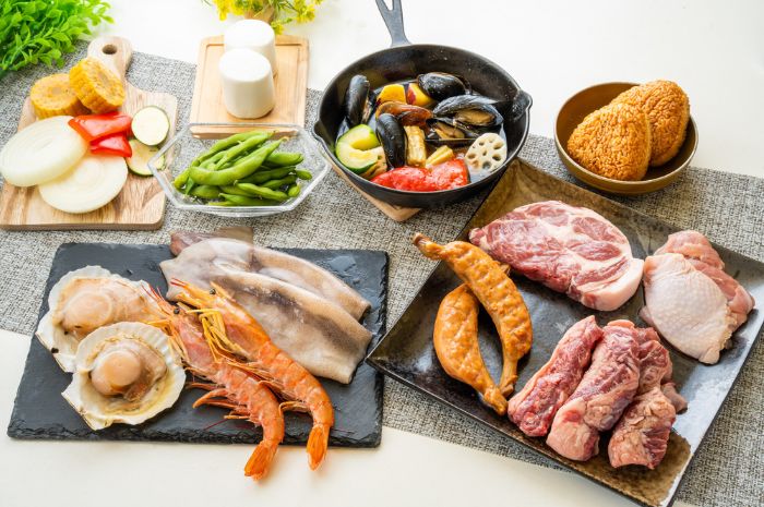 牛肉・豚肉・鶏肉・海鮮などがセットになった炭火BBQプランで気軽にBBQを楽しめます。完全予約制なので、事前に忘れず予約しておきましょう。