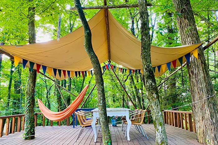 BBQは、カフェレストラン裏の森に設置された大型タープの元で1日1組限定のBBQが楽しめる「BBQ DECK」と、場内にあるトランポリン横に施設された「TRAMPO-LINE BBQ TARP」の2ヶ所で行えます。