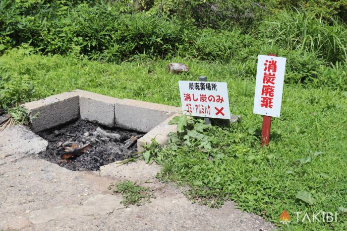 炭の廃棄場所があります。しっかりと消火してサイトに残さないようにしましょう。