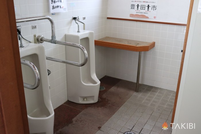 私の宿泊サイト(D区画)付近にあるトイレです。山なので若干の虫はいますが綺麗に清掃されておりました。キャンプ場内の他のトイレも見て回りましたが、同じように清掃され綺麗な状態でした。トイレは水洗で、和式がある場所も確認できました。