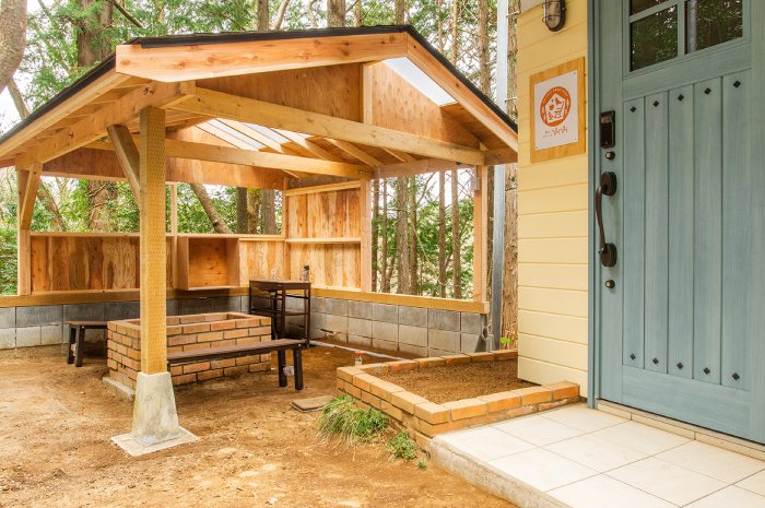 玄関横には屋根付きのBBQハウスもあり、天気を気にせずに思いっきりBBQが出来るのも嬉しいポイント。