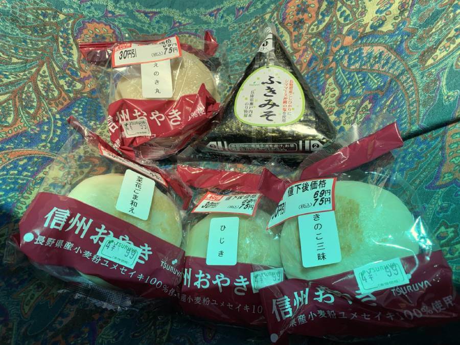 オススメはこちらの おやき と ふきみそおにぎり。(たまたま割引になっていました♩)