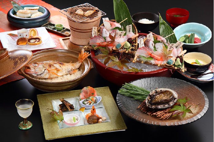 「ちりはまホテルゆ華」の夕食は全部で5種類のコースがありますが、「魚プレミアム」コースと「至福」コースではのどぐろの塩焼き、「極」コースではのどぐろ姿土鍋飯を堪能することができます。