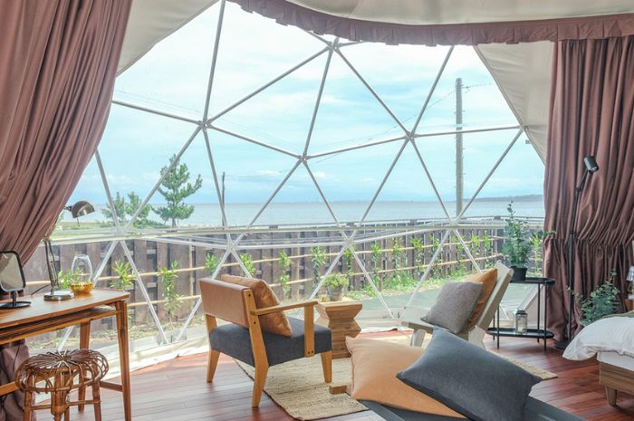 富山湾を一望できるロケーションでグランピング