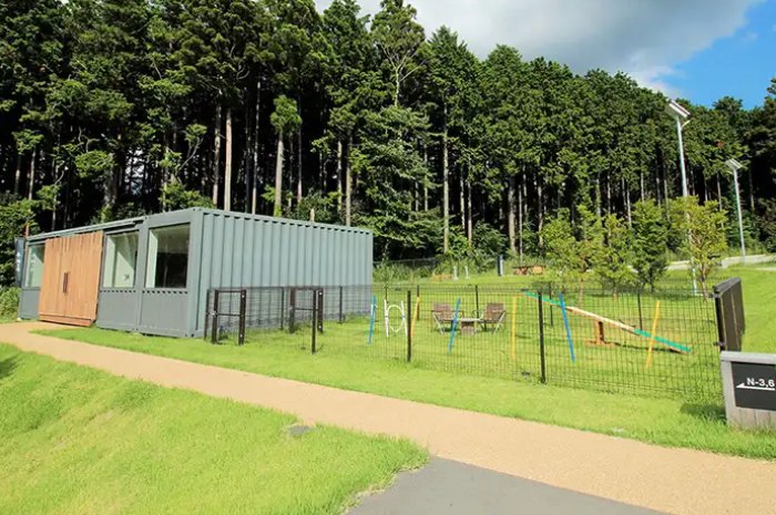 グランデキャビンをベースに、ウッドテラス前に専用のドッグランや足洗い用のシャワーを備えたペット同伴者専用のキャビンは、愛犬と過ごす大切な日を充実したものにしてくれます。