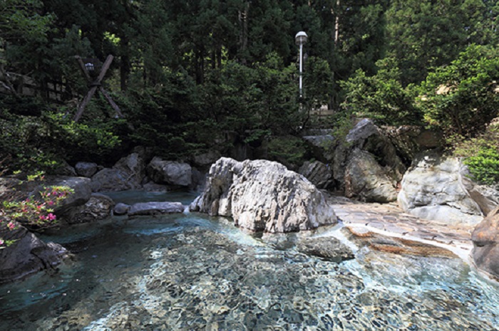 日本三名山の1つである白山の自然を活かした露天風呂と、1,200年以上の歴史がある岩間温泉を源泉とした天然温泉が堪能できる癒しの湯 天領。