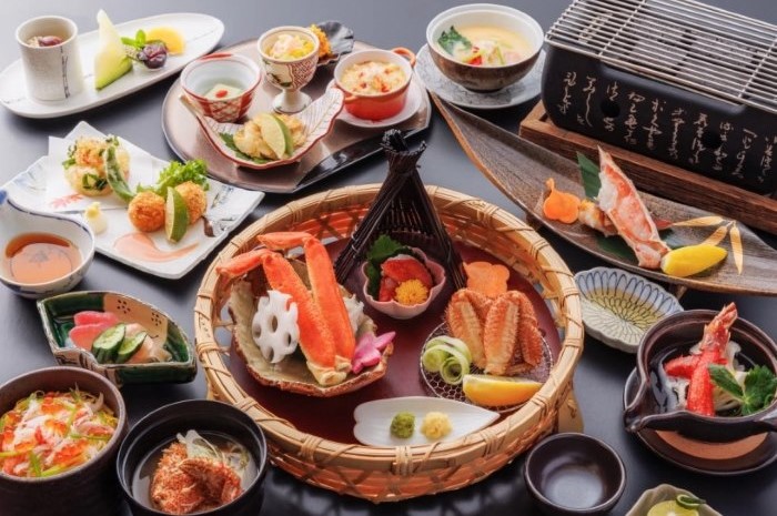 そして、北陸地方の海の幸といえばやっぱり蟹。冬季限定にはなりますが、森の風立山では「蟹づくし会席膳プラン」というプランが提供されています。蟹の土瓶蒸し・蟹のお造り・蟹の炭火焼きなど、前菜から〆の料理まで蟹づくしのプランです。
