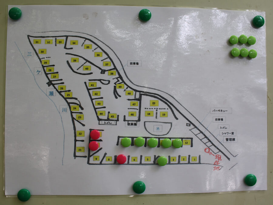 (※予約済みのサイトがあるので管理棟に貼ってある予約表を必ず確認して下さい)