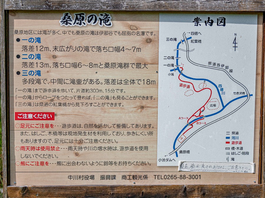 まずは「桑原の滝」ですが滝の入り口まではキャンプ場から徒歩でも15分位で行けます。